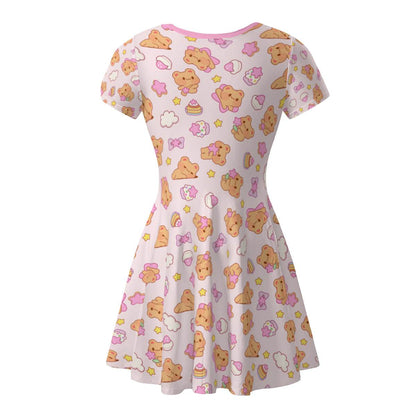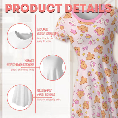 Product Features: This dress features a short-sleeve, round-neck design with a flowy silhouette that falls above the knee. The loose fit provides excellent coverage for the midsection while ensuring a comfortable and stylish look.