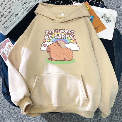 Get snuggly with the chillest critter of all — the capybara! 🛁✨ Our “Don’t Worry Be Cappy” Hoodie is the ultimate blend of cozy, kawaii, and quirky vibes for every soft-hearted baby bun or pastel punk.