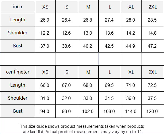 | Bust | 94.0 | 98.0 | 102.0 | 108.0 | 114.0 | 120.0 |