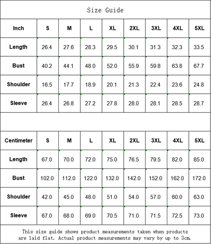 | Centimeter | S | M | L | XL | 2XL | 3XL | 4XL | 5XL |