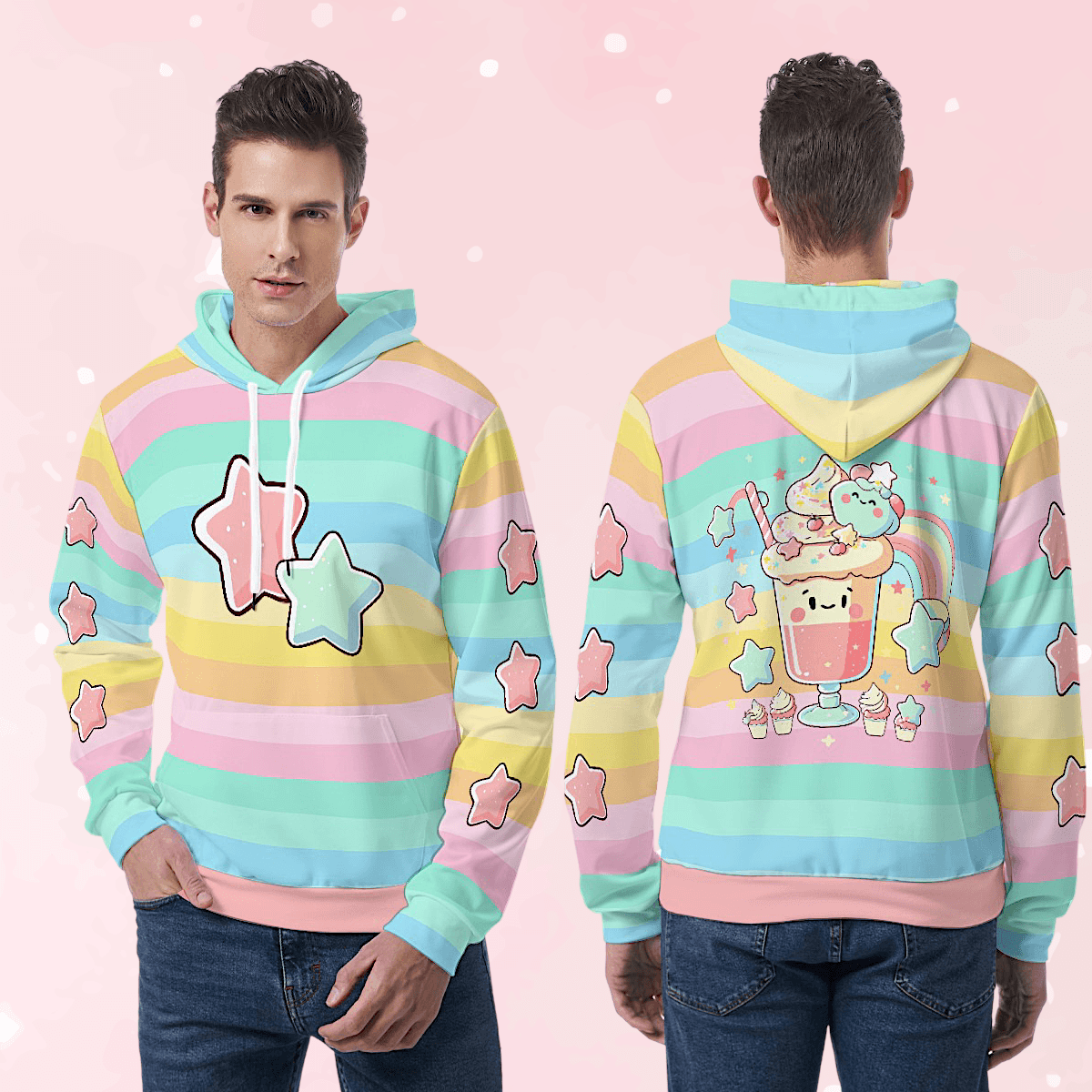 - Drawstring, double-side print hood,rib-knit hem and cuffs.