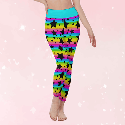 Neon Stripes & Stars High Waist Leggings