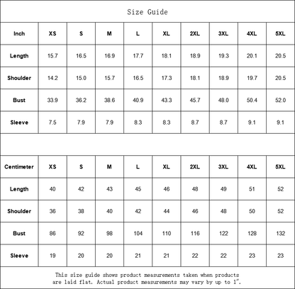 | Inch | XS | S | M | L | XL | 2XL | 3XL | 4XL | 5XL |