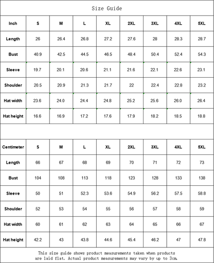 | Centimeter | S | M | L | XL | 2XL | 3XL | 4XL | 5XL |