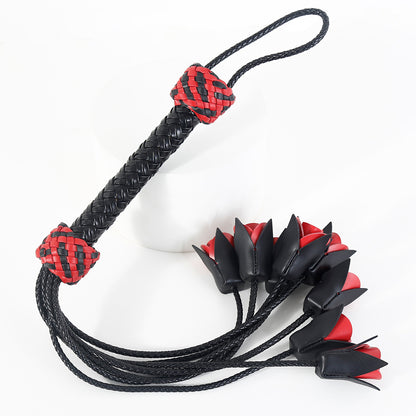 With a gorgeous rosebud handle and stinging black & red leather strands, this whip is both a punishment tool and a stunning scene prop. One flick, and they’ll be begging to behave 💋