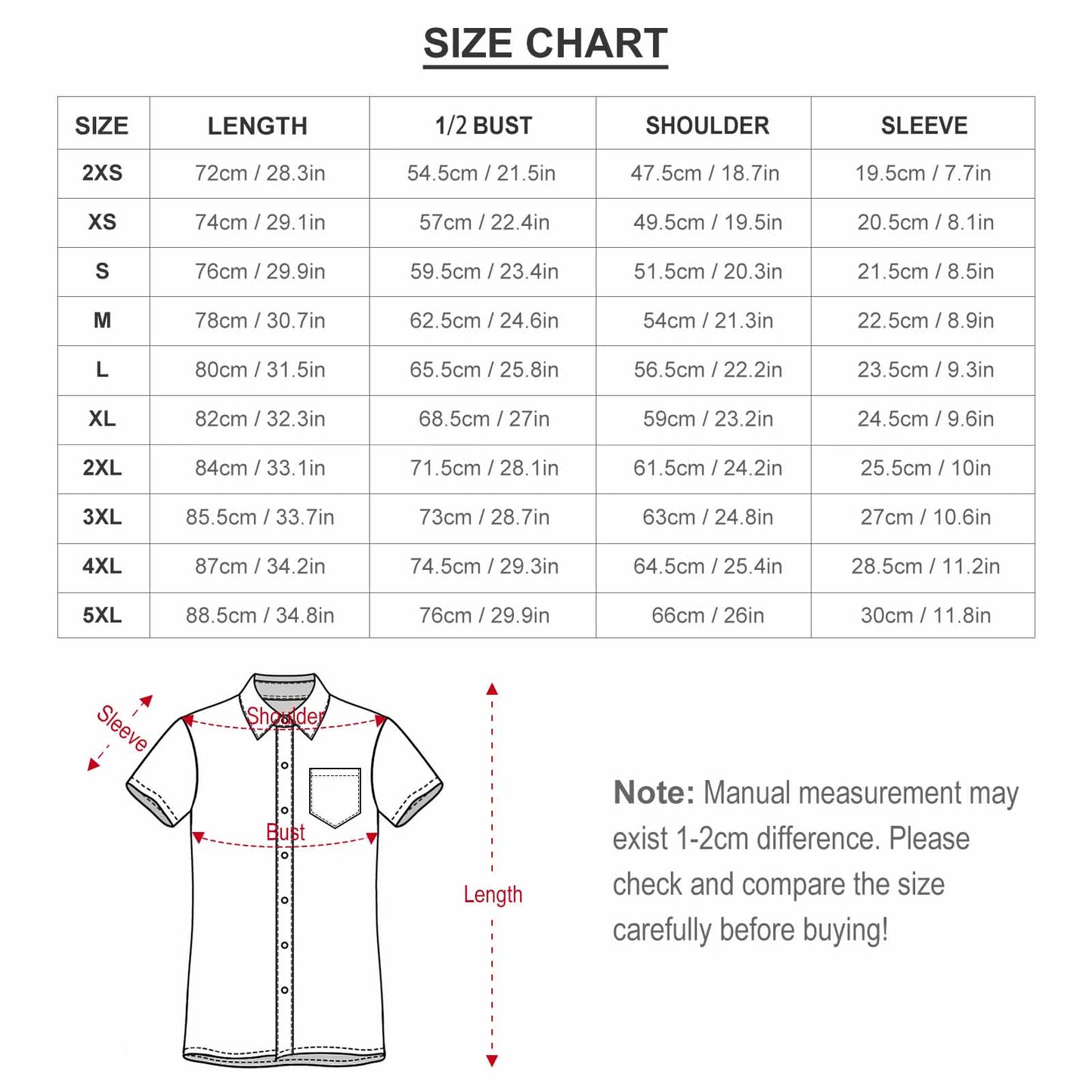 | Size | Length (cm/in) | 1/2 Chest (cm/in) | Shoulder Width (cm/in) | Sleeve (cm/in) |