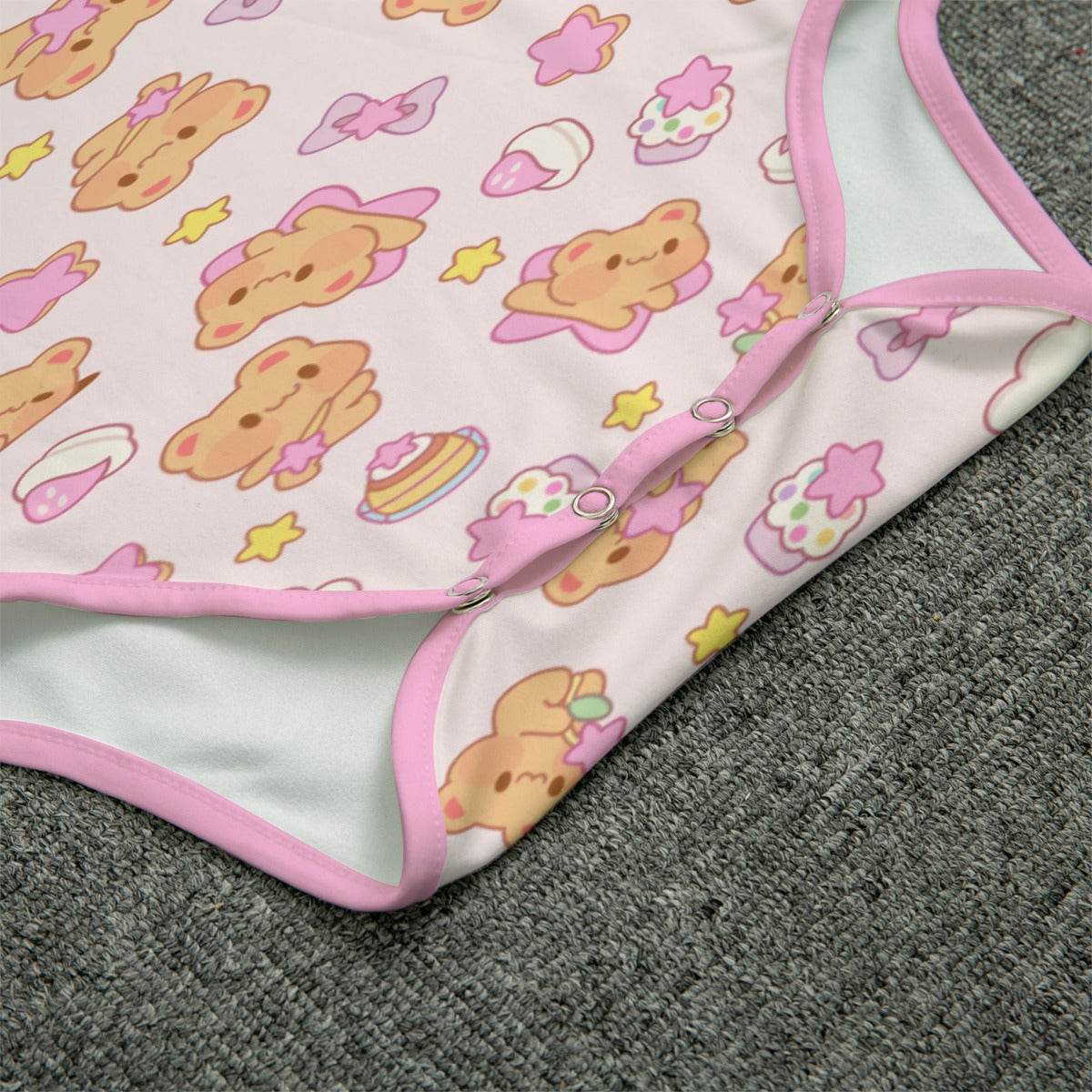 - This Adult ABDL Bodysuit made of comfortable fabric, feels soft on the skin, offers ease and comfort for all day wear. Metal snaps at the bottom.