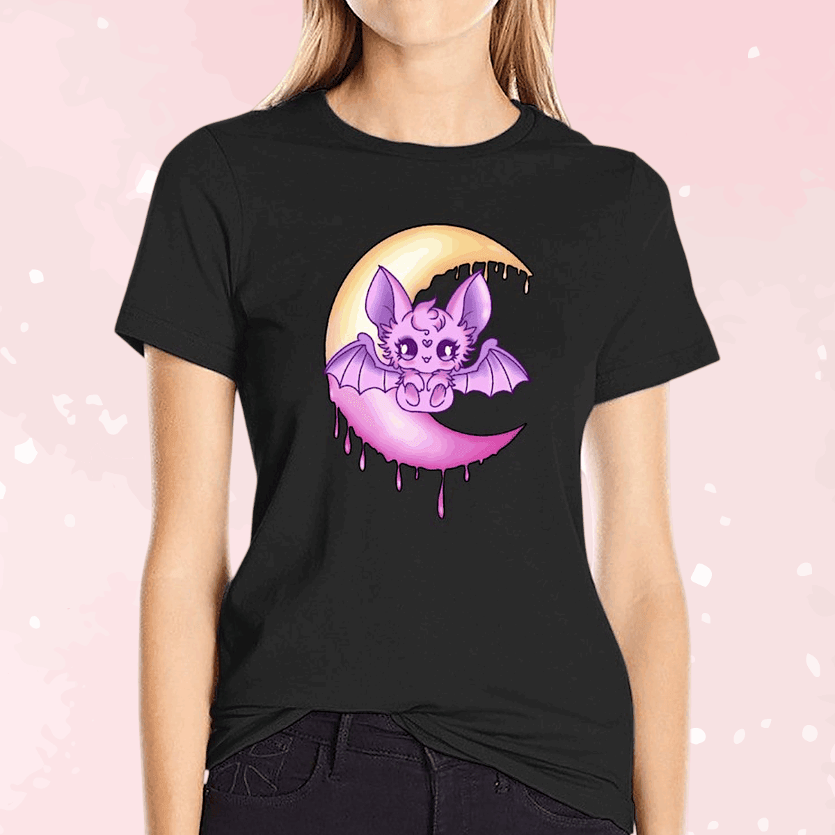 🦇 Available in dreamy solids and magical prints, this tee is a versatile must-have for pastel goth babes, spooky cuties, and everyone in between.