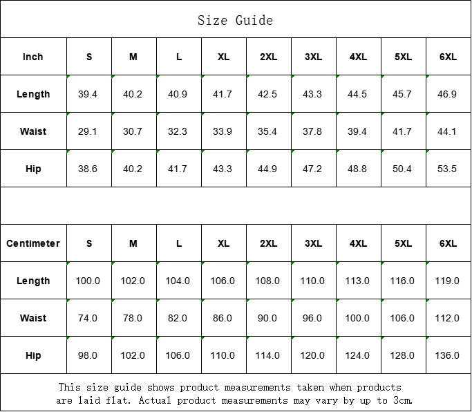| Centimeter | S | M | L | XL | 2XL | 3XL | 4XL | 5XL | 6XL |
