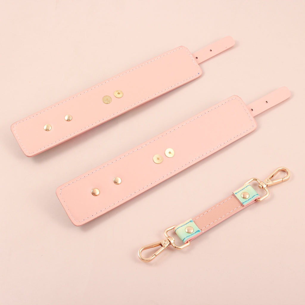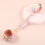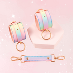 These soft yet sturdy restraints combine comfort and cuteness, designed in dreamy pastel rainbow hues with glossy silver hardware.