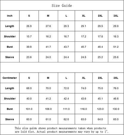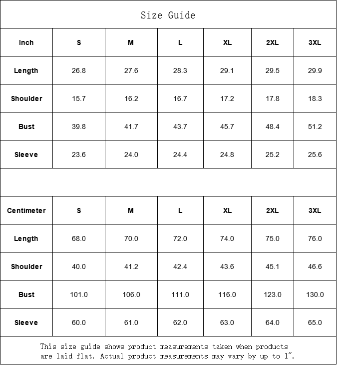 | Centimeter | S | M | L | XL | 2XL | 3XL |