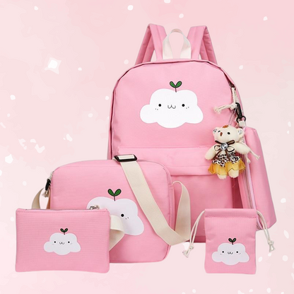 Carry all your essentials in style with our Cute and Kawaii Cloud Backpack Set! This set comes with five pieces crafted from high-quality materials, This backpack is durable and comfortable to wear. It has adjustable straps and a padded back, providing maximum comfort and support for your back and shoulders.