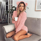 This plush teddy romper is your go-to for cozy cuddles, chilly mornings, and staying adorably snug from head to toe. Featuring sweet bear ears on the hood and soft fleece all over, it's like wearing a cuddle!
