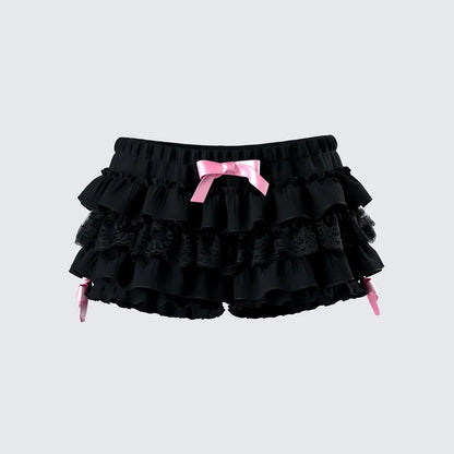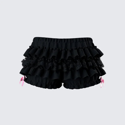 With layered ruffles, dainty lace trim, and cute little bows, these black bloomers bring the perfect mix of bratty and babydoll energy 💖