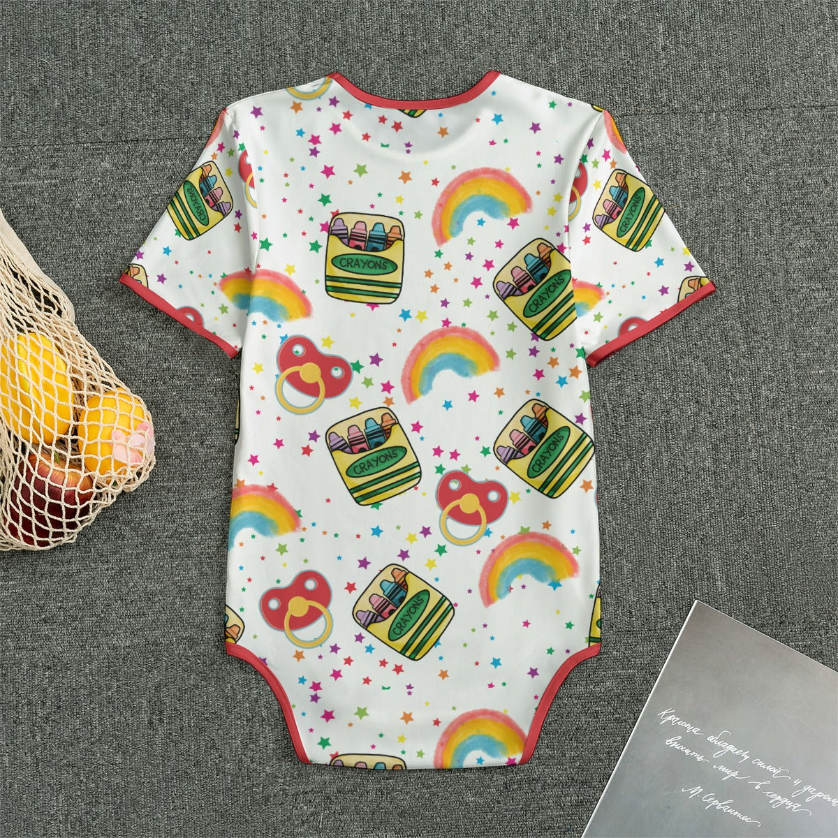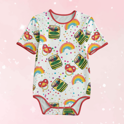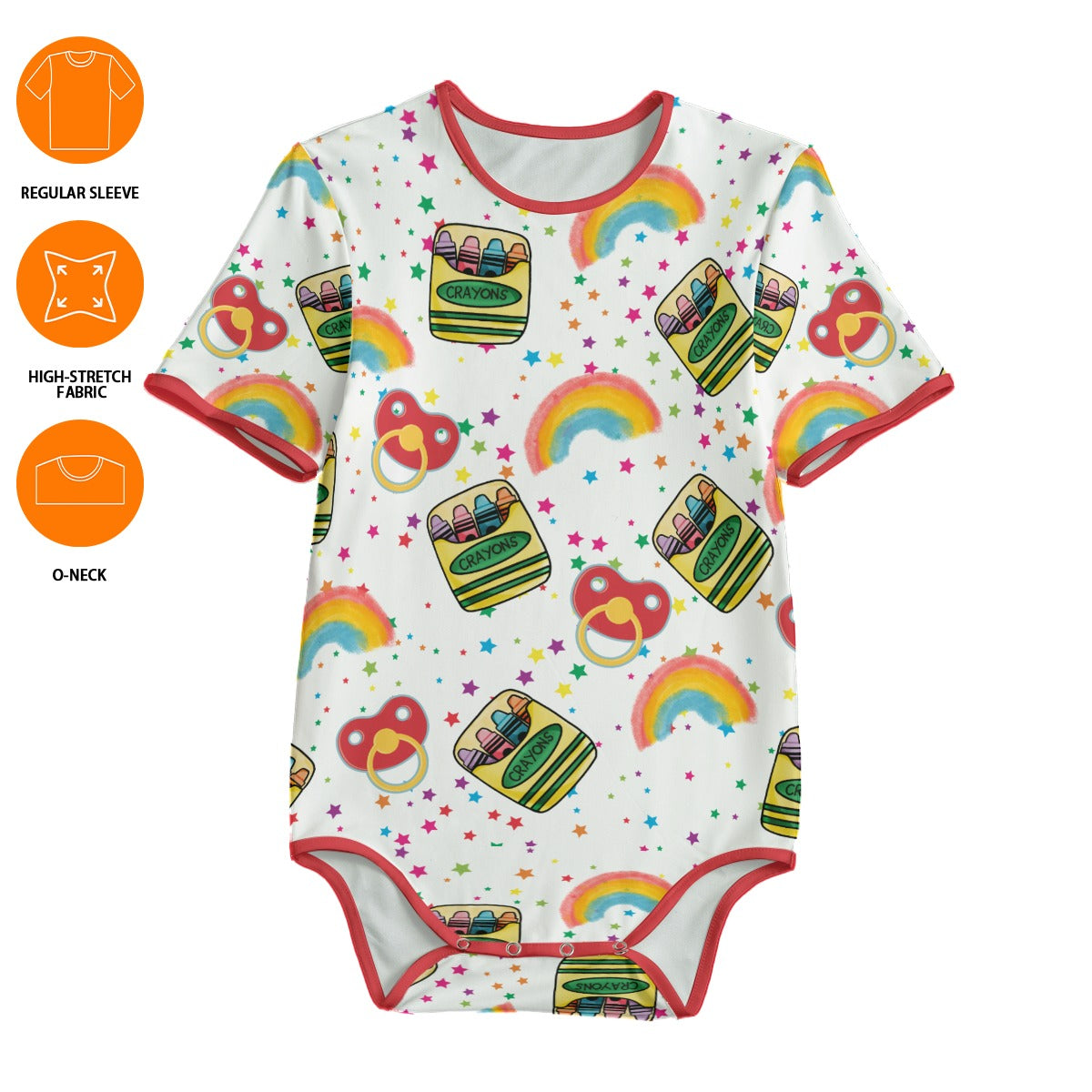 Covered in crayon boxes, doodle rainbows, and sparkly stars, this adorable Snappie is made for creative littles, playful regressors, and anyone who loves to color outside the lines 🌈